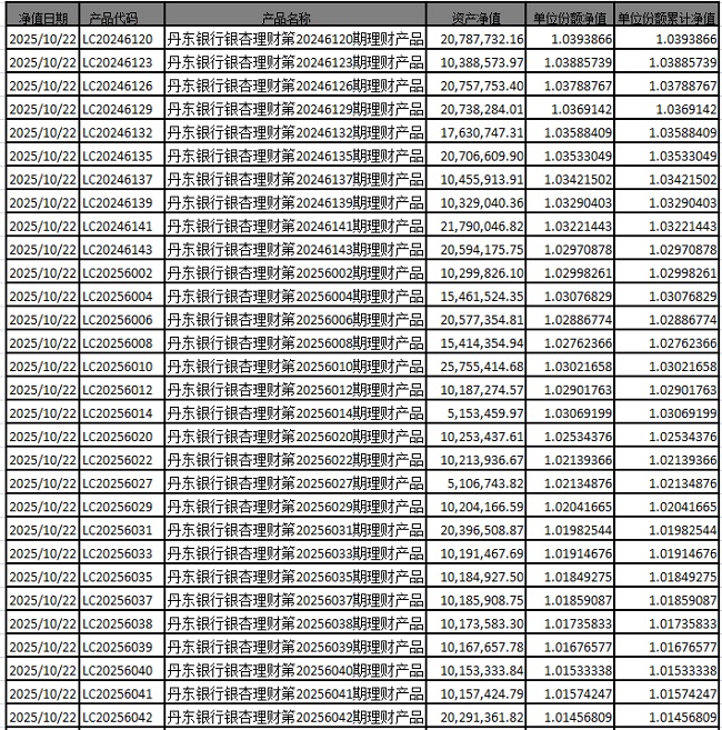 尊敬的投资者: 我行发行的以下理财产品资产净值与份额净值如下: