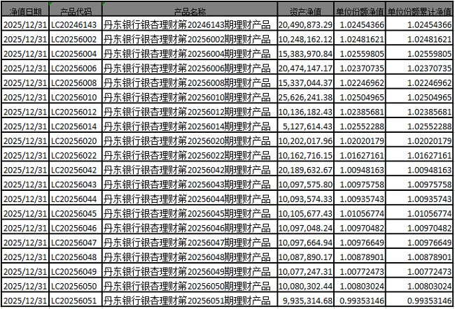 尊敬的投资者: 我行发行的以下理财产品资产净值与份额净值如下: