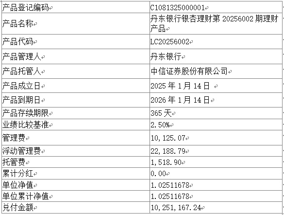 尊敬的客户: 我行下列理财产品已于2026年1月14日进行到期清算兑付,根据与投资者的约定,现将到期情况进行公告,具体披露信息如下。