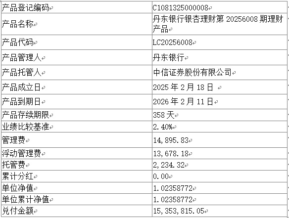 我行下列理财产品已于2026年2月11日进行到期清算兑付,根据与投资者的约定,现将到期情况进行公告,具体披露信息如下。
