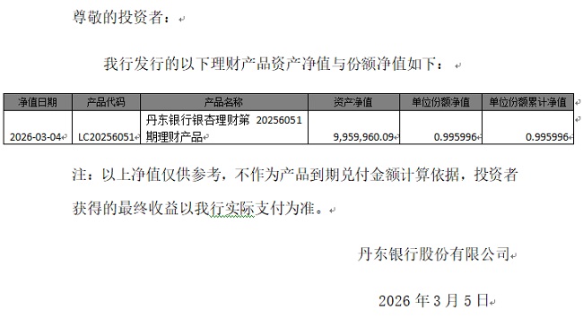 丹东银行银杏理财系列产品净值报告